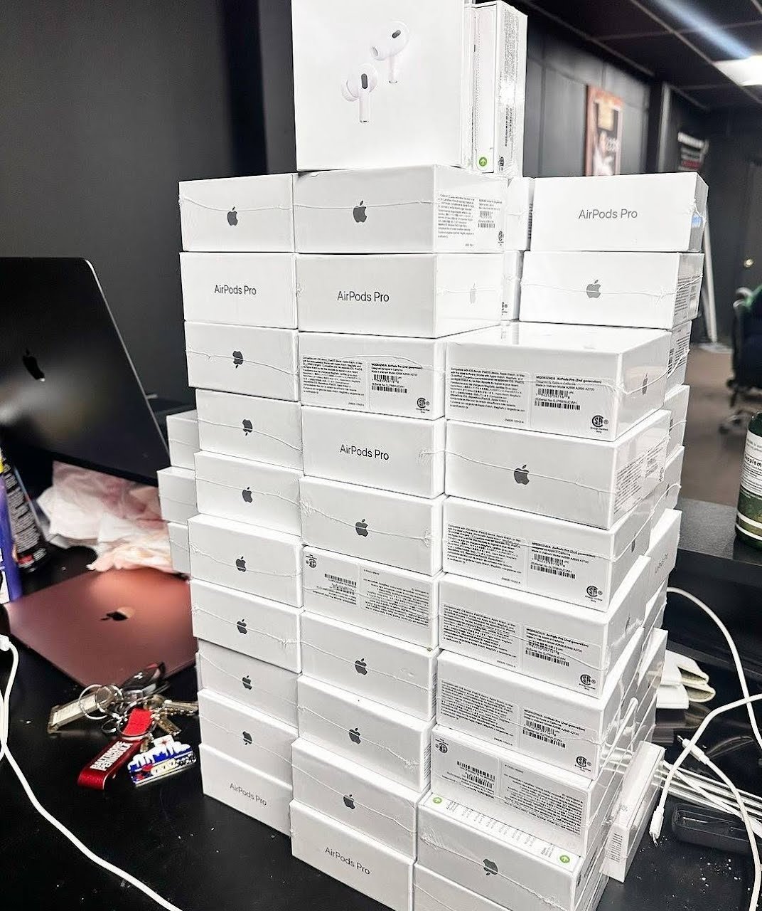 Each pallet may contain dozens of AirPods Pro units, ready for resale.