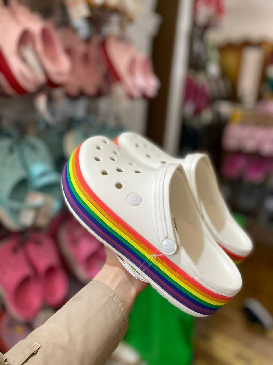 The renowned crocs slippers, featuring a cozy, fuzzy liner now